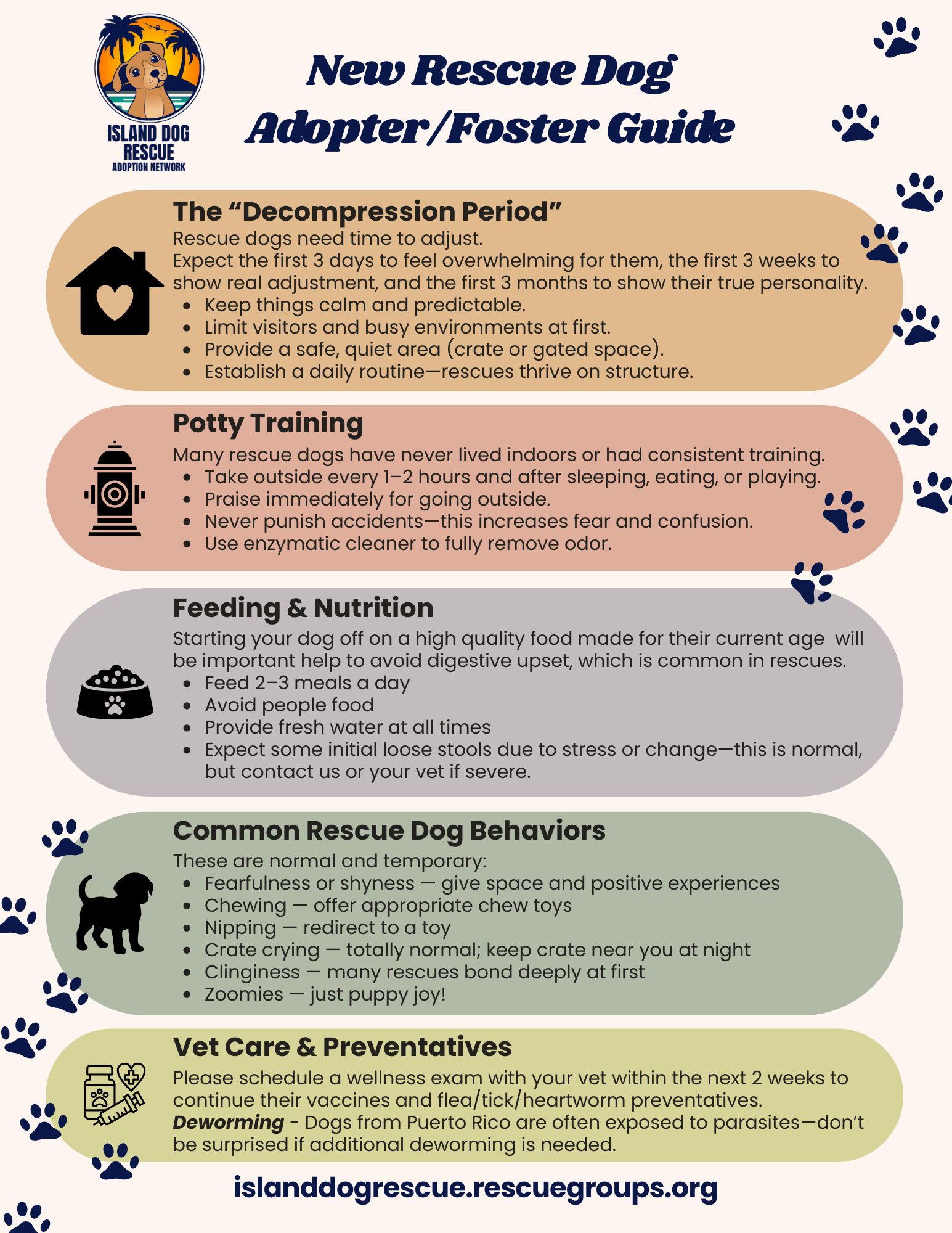 Thank you for adopting or fostering one of our Island Dogs.  We have provided some quick reference resources for you here.